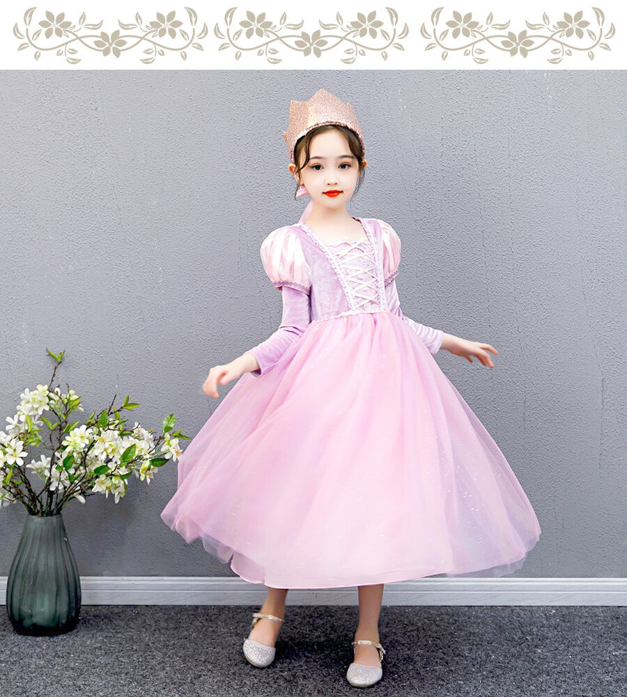 キッズ プリンセス なりきりドレス ワンピース コスチューム コスプレ 子供服 衣装 ラプンツェル お姫様 誕生日 パーティー プレゼント ギフト ハロウィン クリスマス 女の子 キラキラ 豪華 可愛い 変身ドレス