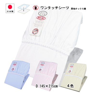 ワンタッチシーツ ダブル ムアツ布団にも対応 防ダニ 厚手 厚地織 オックス マットレスカバー 145×215cm 日本製 三河産